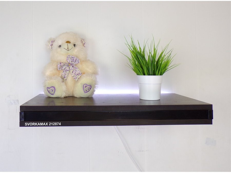 Парящая полка скрытого крепления с подсветкой и тайником, черный "SVORKAMAX 212874" 60х30 см, венге