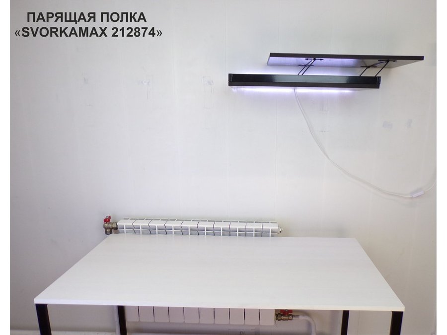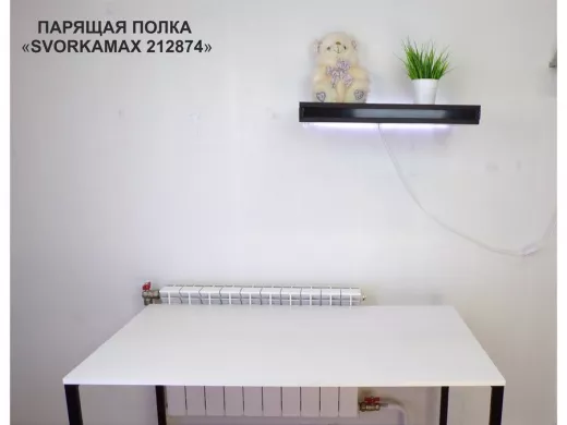 Полка скрытого крепления укомплектована светодиодной подсветкой с выключателем на шнуре и блоком питания