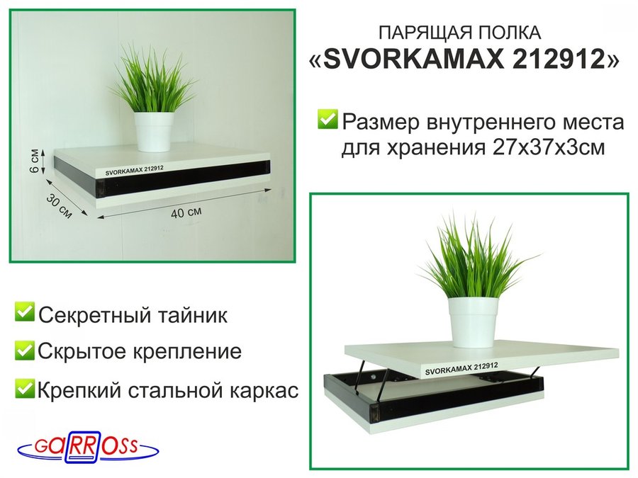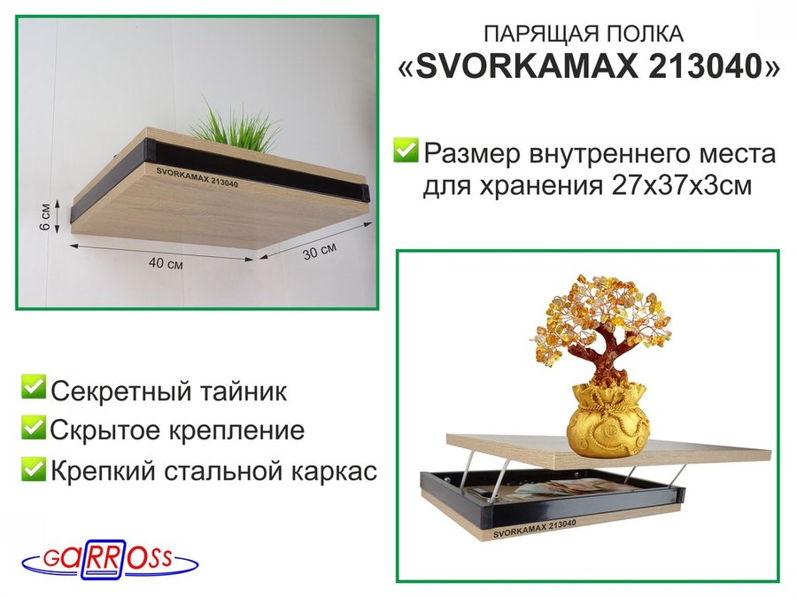 . Полки скрытого крепления с тайником "SVORKAMAX" парящие полки 40х30 см
