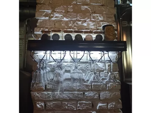 Парящая полка с подсветкой, тайником и держателями бокалов, черный "SVORKAMAX 213666" 60х30см, венге