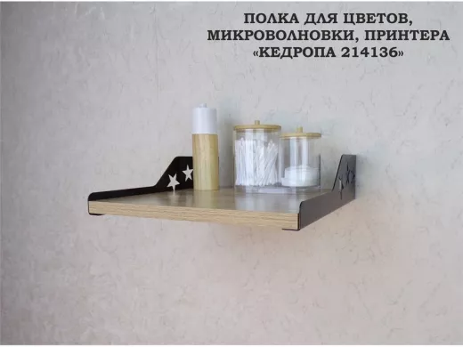 Полка предназначена для цветов, сувениров, декоративных мелочей, можно использовать на кухне для хранения посуды, мелкой бытовой техники, специй и тд.