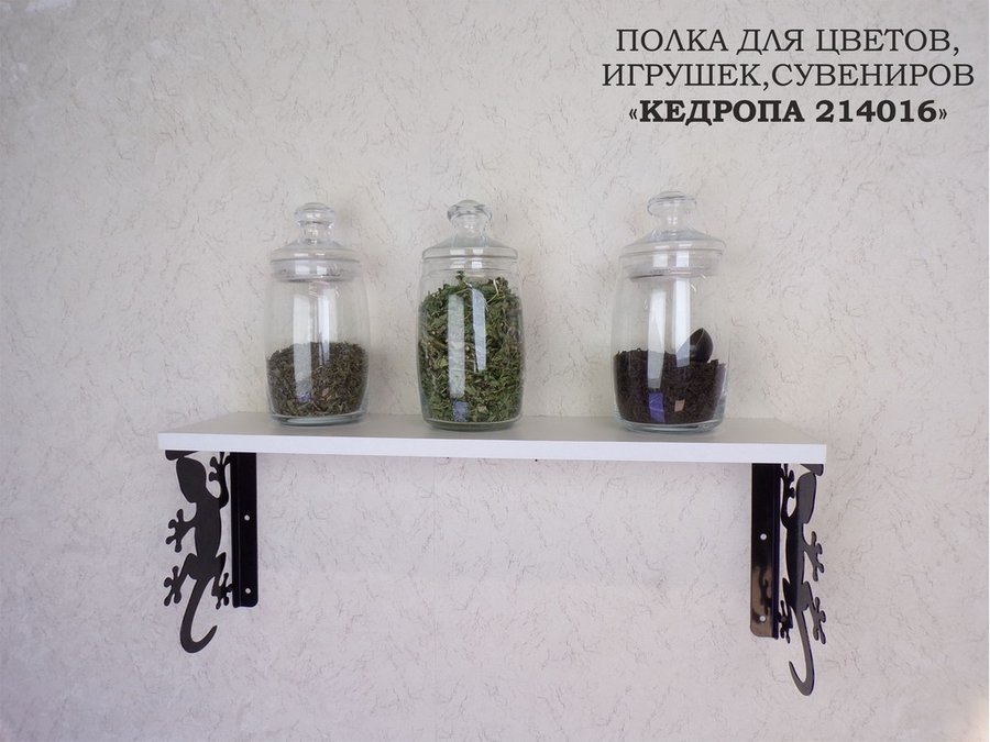 Полка для цветов, игрушек,сувениров "КЕДРОПА-214016 гекон" размер 15х60х24 см, белый шагрень