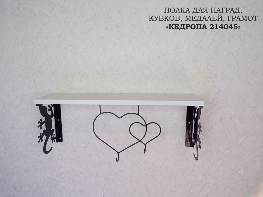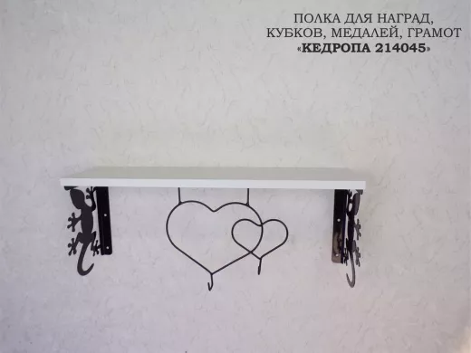 Полка для наград, кубков, медалей, грамот "КЕДРОПА-214045 гекон" размер 15х60х24 см, сосна с сердцем