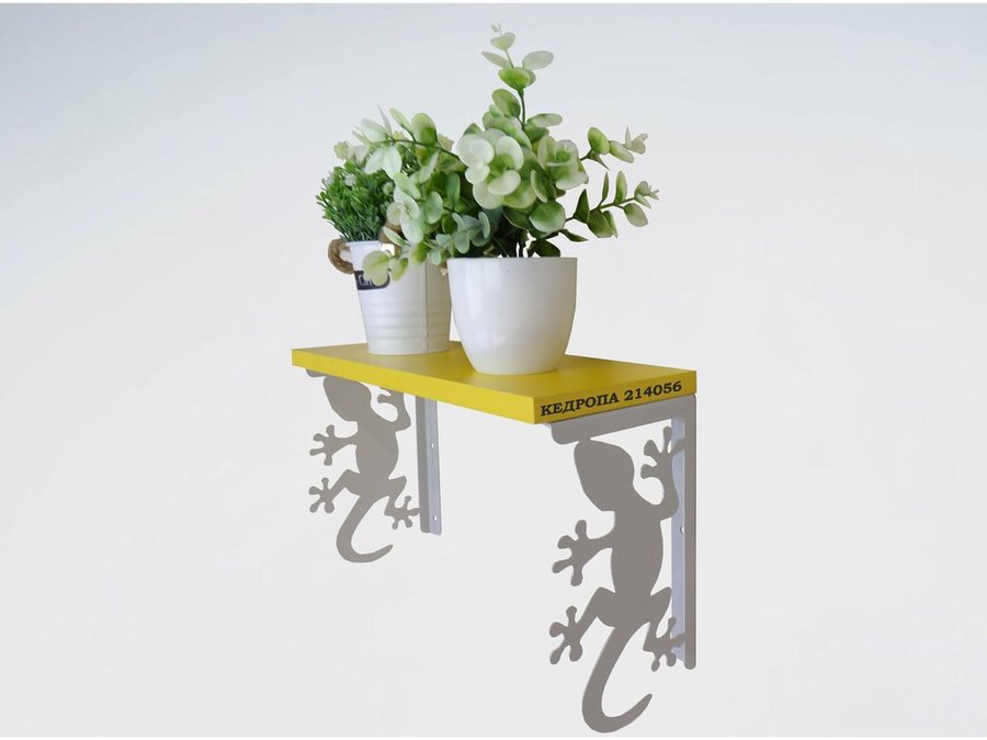Полка для цветов, игрушек,сувениров "КЕДРОПА-214056 гекон" размер 15х40х24 см, серый, желтый