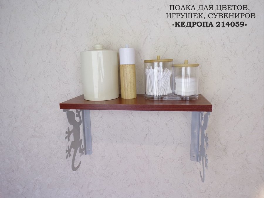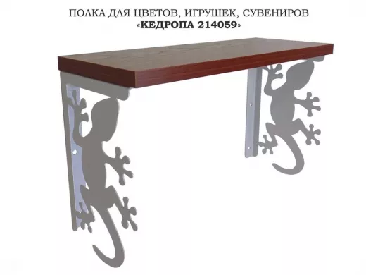 В корзину Купить в 1 клик Полка для цветов, игрушек,сувениров "КЕДРОПА-214059 гекон" размер 15х40х24 см, серый, орех итал