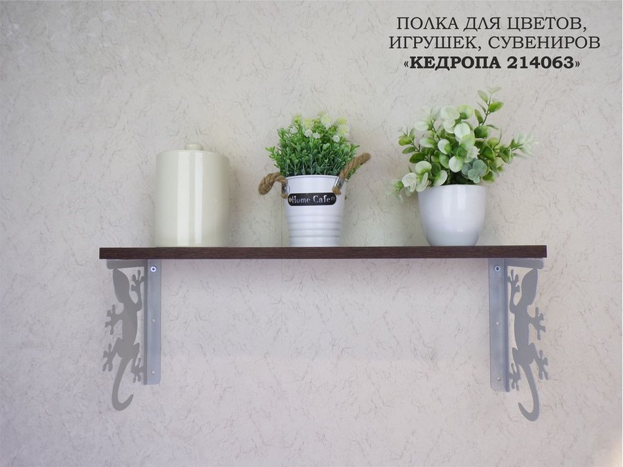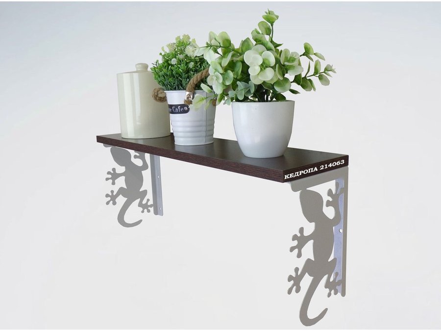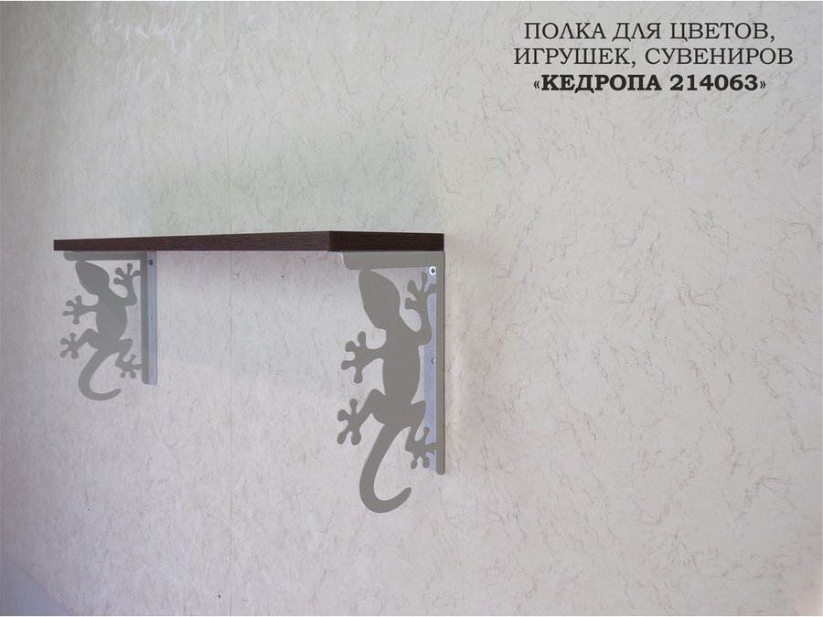 В корзину Купить в 1 клик Полка для цветов, игрушек,сувениров "КЕДРОПА-214063 гекон" размер 15х60х24 см, серый, венге