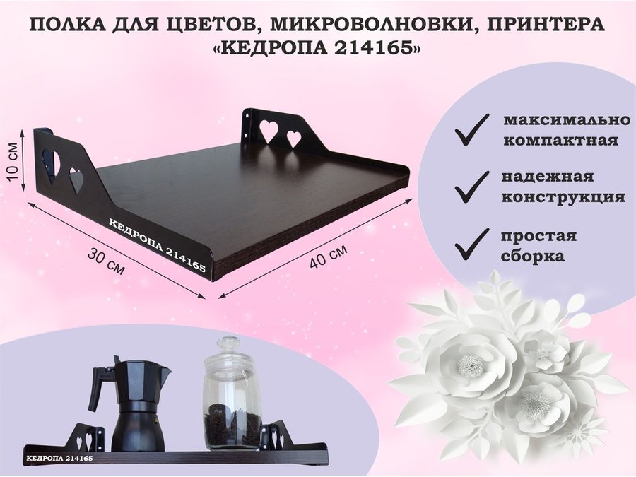 Полка для цветов, микроволновки, принтера "КЕДРОПА-214156" размер 30х30х10 см, белый шагрень, сердце