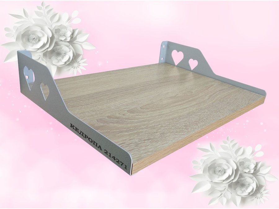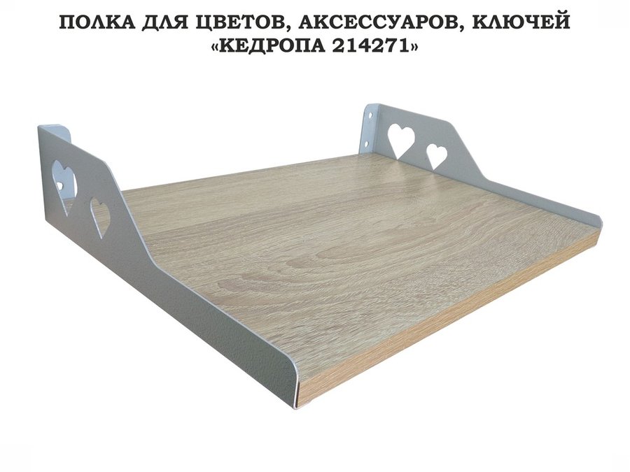 В корзину Купить в 1 клик Полка для цветов, аксессуаров, ключей "КЕДРОПА-214271" размер 40х30 см, дуб сонома, сердце