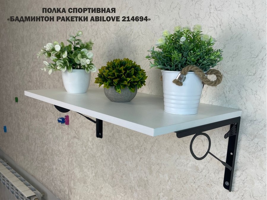Полка спортивная "БАДМИНТОН РАКЕТКИ ABILOVE-214694" для кубков, белая, размер 30х60см