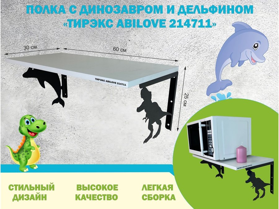 В корзину Купить в 1 клик Полка с динозавром и дельфином "ТИРЭКС ABILOVE-214710" для игрушек, венге, 30х60см