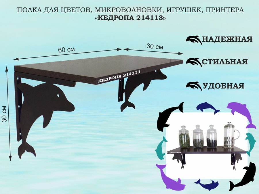 Полка для цветов, микроволновки, игрушек, принтера "КЕДРОПА-214113"размер 30х60x30 см, черный, венге