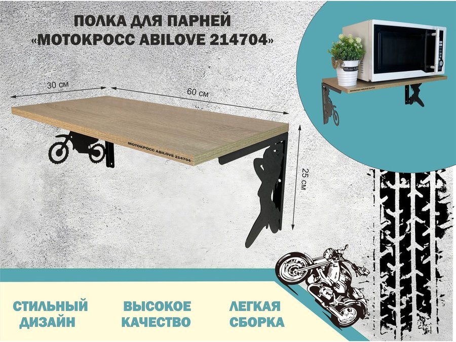 В корзину Купить в 1 клик Полка для парней "МОТОКРОСС ABILOVE-214706" для кубков и аксессуаров, венге, 30х60см