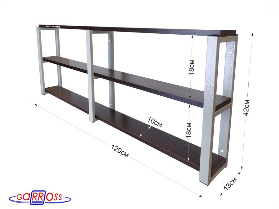 В корзину Купить в 1 клик Полка для вина и бокалов, высота 42см, 3 уровня, размер 10х120см, серая "LOFTOM 211576" венге