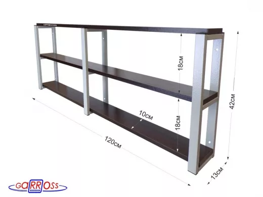 Полка для вина и бокалов, высота 42см, 3 уровня, размер 10х120см, серая "LOFTOM 211576" венге