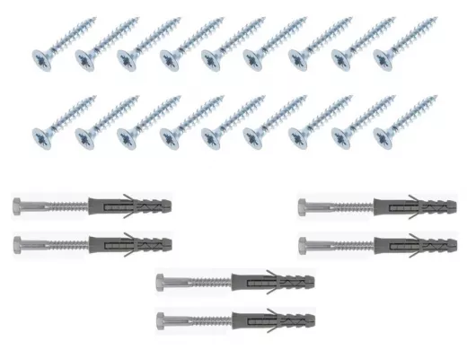 • Полка надежно крепится к стене при помощи шурупов с дюбелями, идущих в комплекте