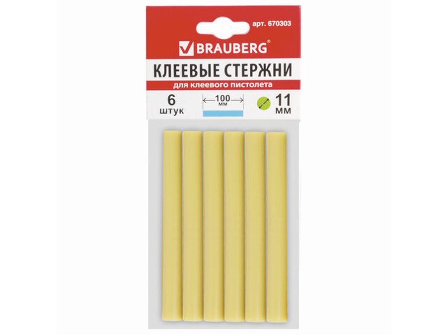 В корзину Купить в 1 клик Клеевые стержни, диаметр 11,0мм, длина 100мм, желтые, КОМПЛЕКТ 6 штук "BR-79849", европодвес