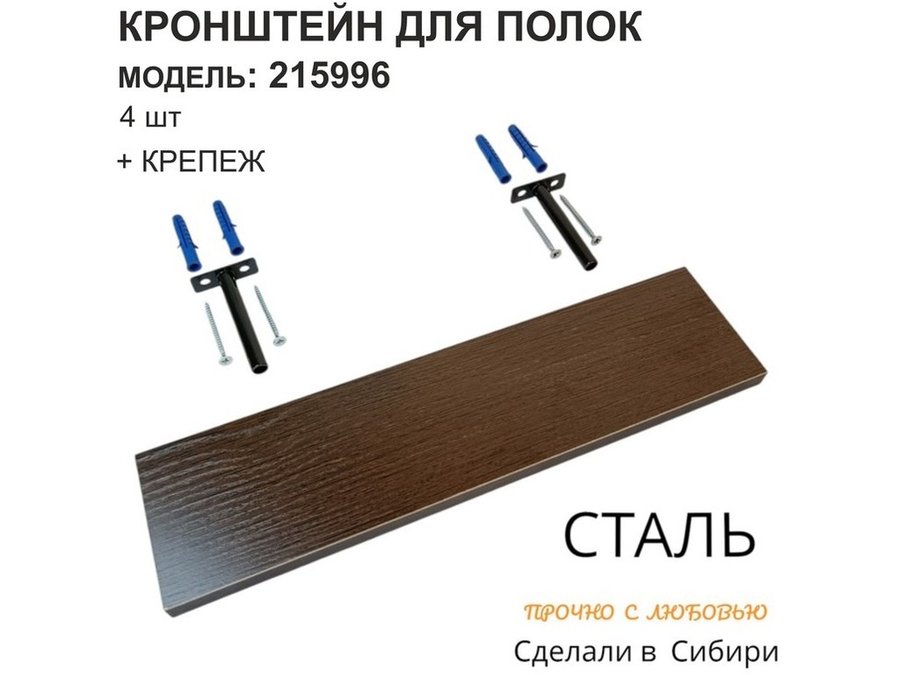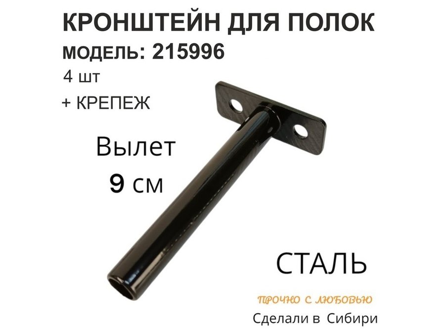Кронштейн для скрытого крепления полок, 12х90мм, черный, в наборе 4шт "SVORKAMAX-215996" без полки