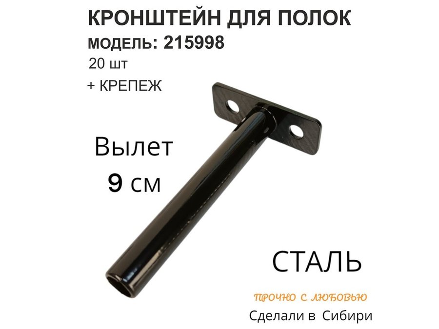 Кронштейн для скрытого крепления полок, 12х90мм, черный, в наборе 20шт "SVORKAMAX-215998" без полки