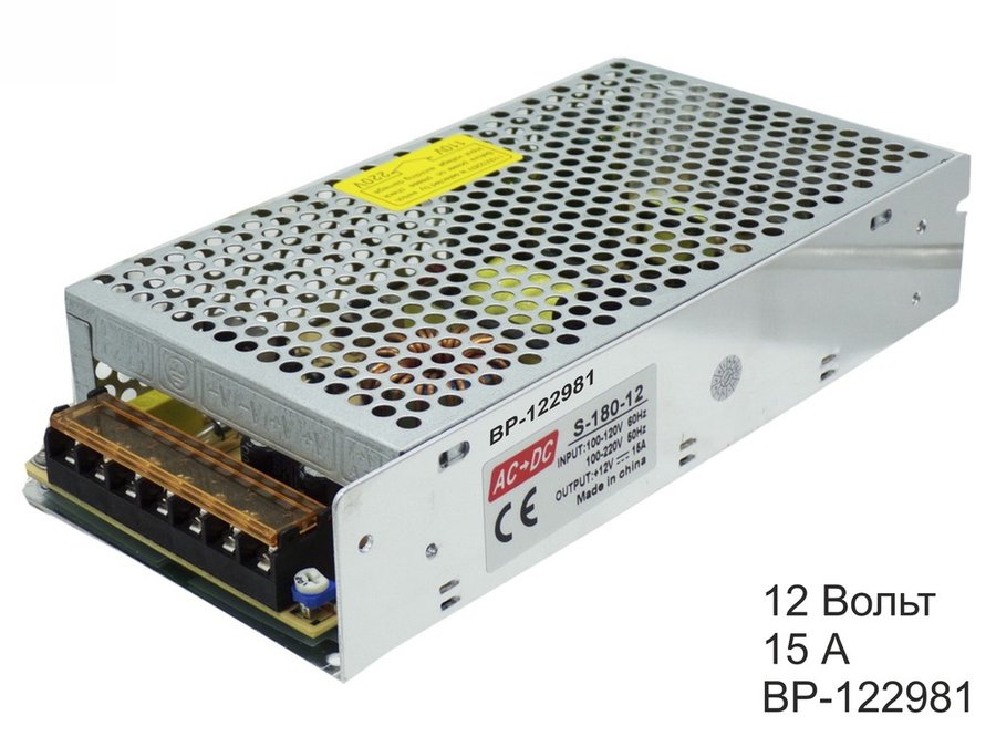 В корзину Купить в 1 клик Блок питания 12 Вольт 15000мA "BP-122981" встраиваемый 12В- 15,0А (факт.12А, 200*100*40)