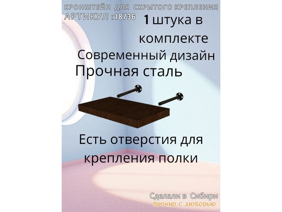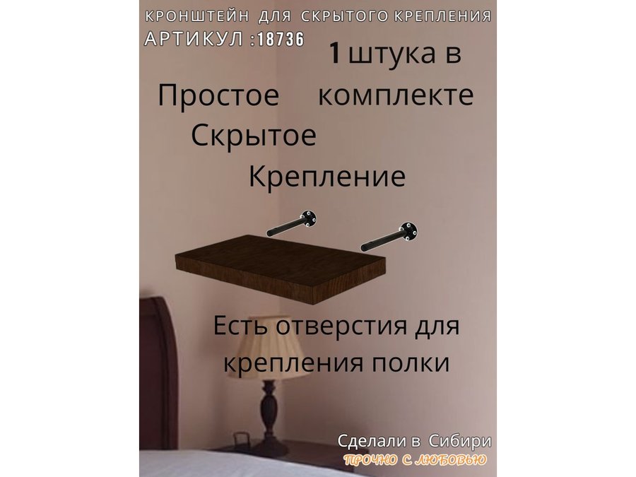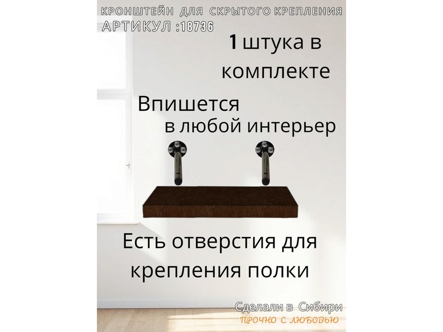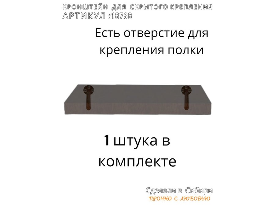 - Кронштейн предназначен для скрытого крепления полок, изготовленных из различных материалов: МДФ, ДСП, дерево, пластик.