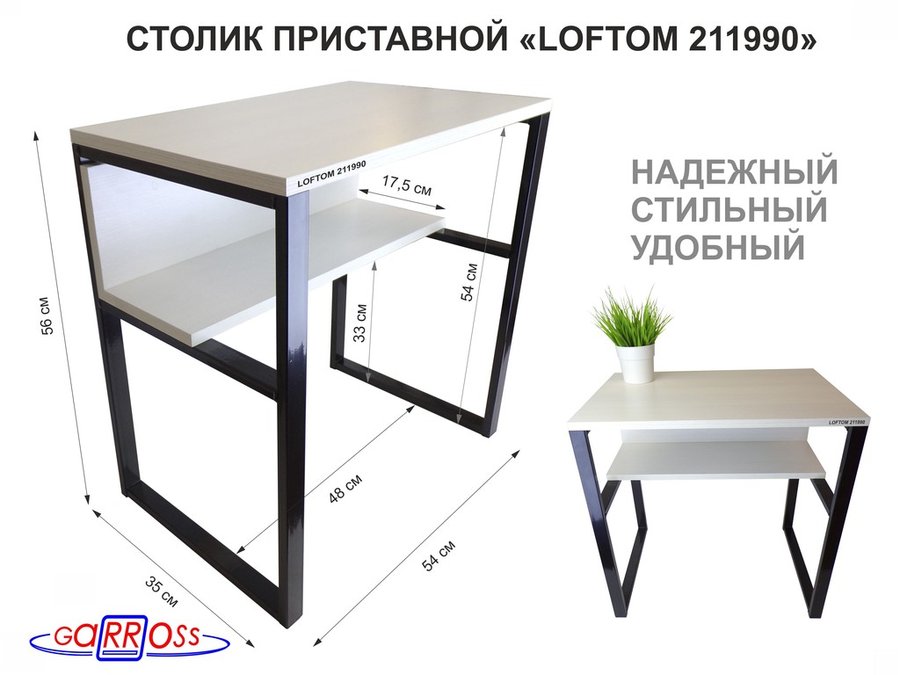 . Столики прикроватные, журнальные "LOFTOM" высотой 56 см, столешня 54х35 см
