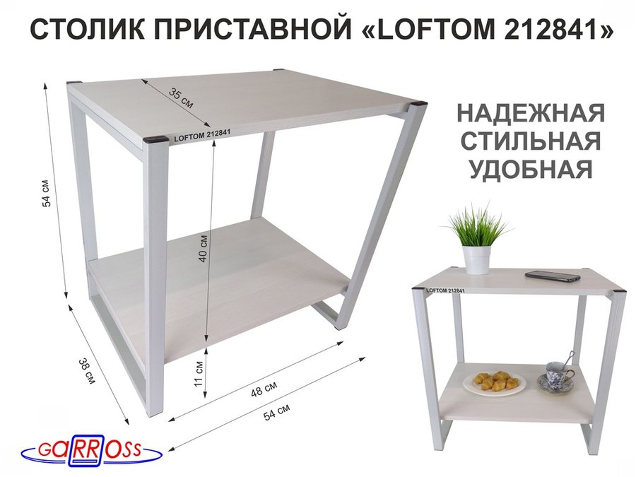 . Столики прикроватные, журнальные "LOFTOM" высотой 55 см с полкой, столешня 54х35 см
