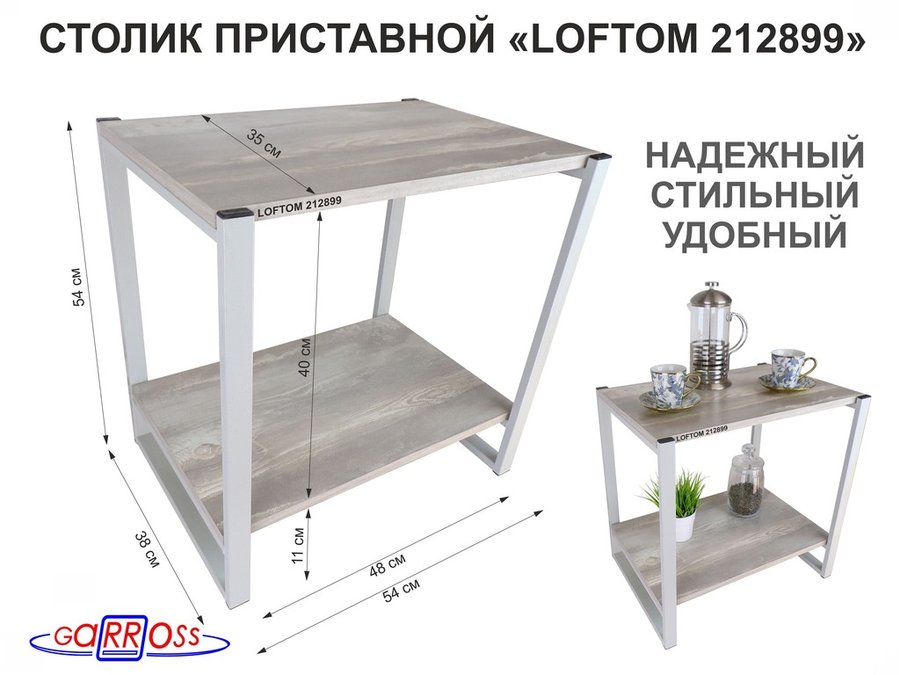 В корзину Купить в 1 клик Столик приставной, серый, 55см "LOFTOM 212899" прикроватный стол журнальный с полкой, лофт