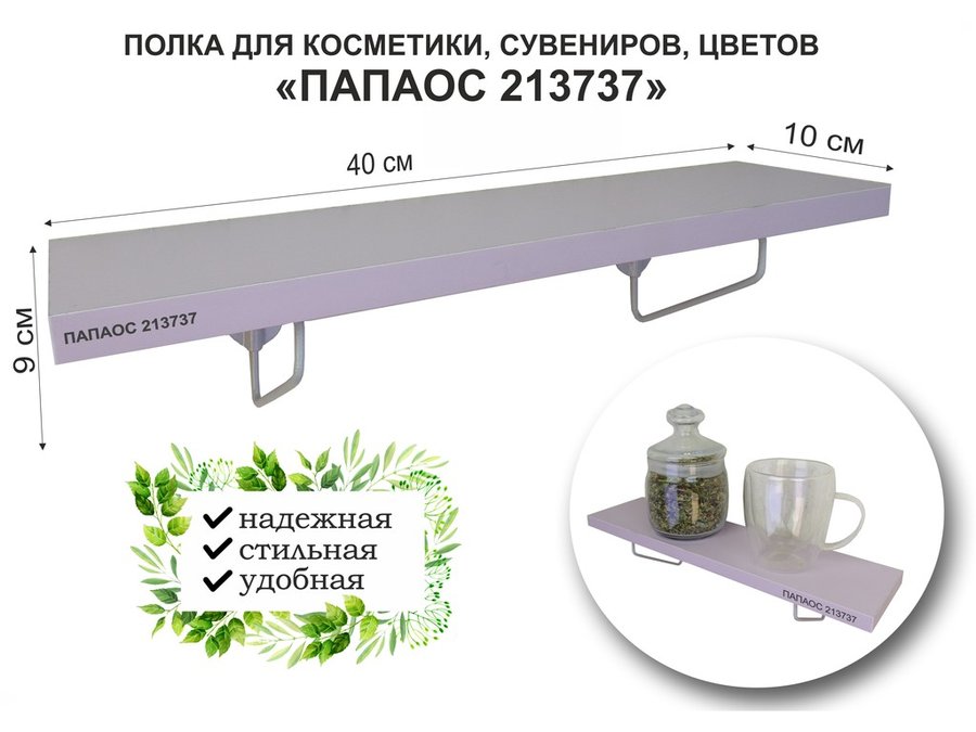 В корзину Купить в 1 клик Полка для косметики, сувениров, цветов, 40х10 см, высота 9 см, серый "ПАПАОС 213737" лаванда