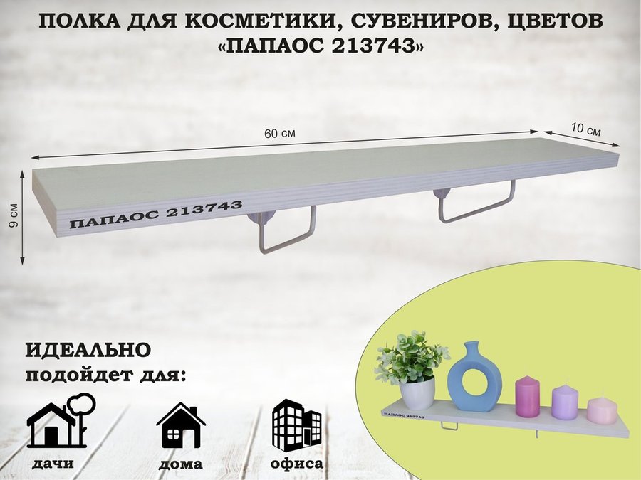 В корзину Купить в 1 клик Полка для косметики, сувениров, цветов, 60х10 см, высота 9 см, серый "ПАПАОС 213743" сосна