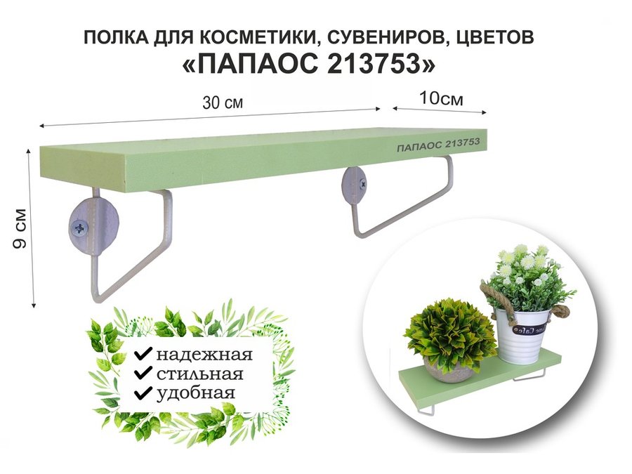 В корзину Купить в 1 клик Полка для косметики, сувениров, цветов, 30х10 см, высота 9 см, серый "ПАПАОС 213753" салатовый