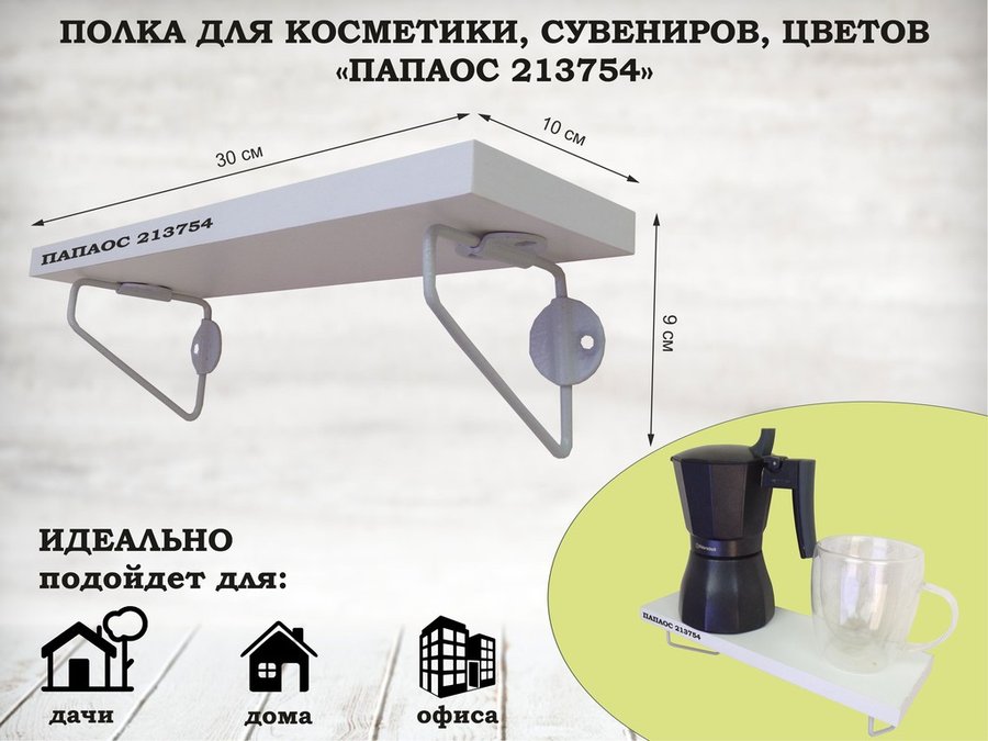 В корзину Купить в 1 клик Полка для косметики, сувениров, цветов, 30х10 см, высота 9 см, серый "ПАПАОС 213754" белый шагрень