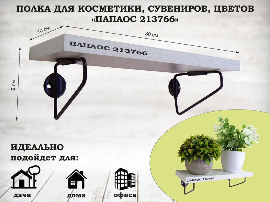 В корзину Купить в 1 клик Полка для косметики, сувениров, цветов, 30х10 см, высота 9 см, черный "ПАПАОС 213766" сосна