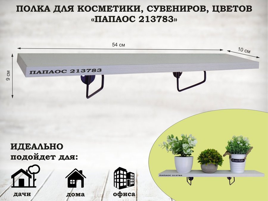 В корзину Купить в 1 клик Полка для косметики, сувениров, цветов, 54х10 см, высота 9 см, серый "ПАПАОС 213742" сосна