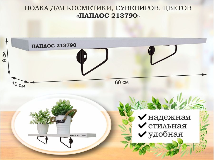 В корзину Купить в 1 клик Полка для косметики, сувениров, цветов, 60х10 см, высота 9 см, черный "ПАПАОС 213790" белый