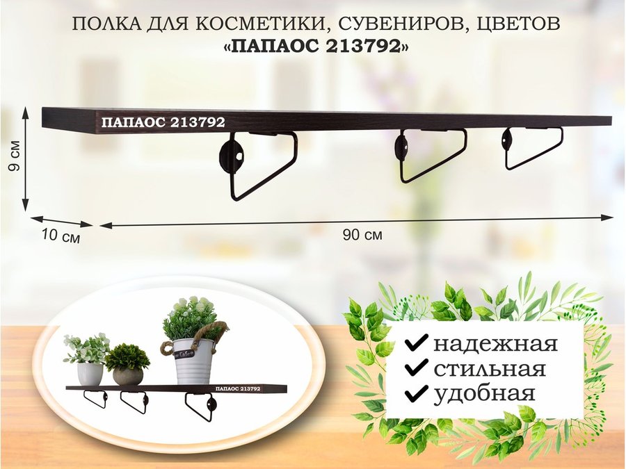 В корзину Купить в 1 клик Полка для косметики, сувениров, цветов, 90х10 см, высота 9 см, черный "ПАПАОС 213792" венге