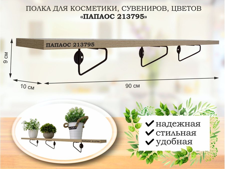 В корзину Купить в 1 клик Полка для косметики, сувениров, цветов, 90х10 см, высота 9 см, черный "ПАПАОС 213795" дуб сонома