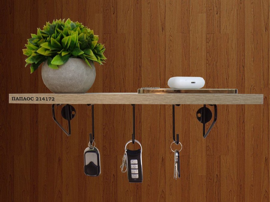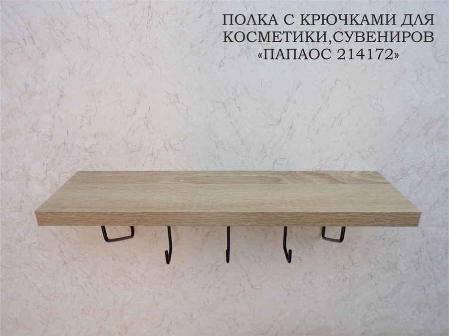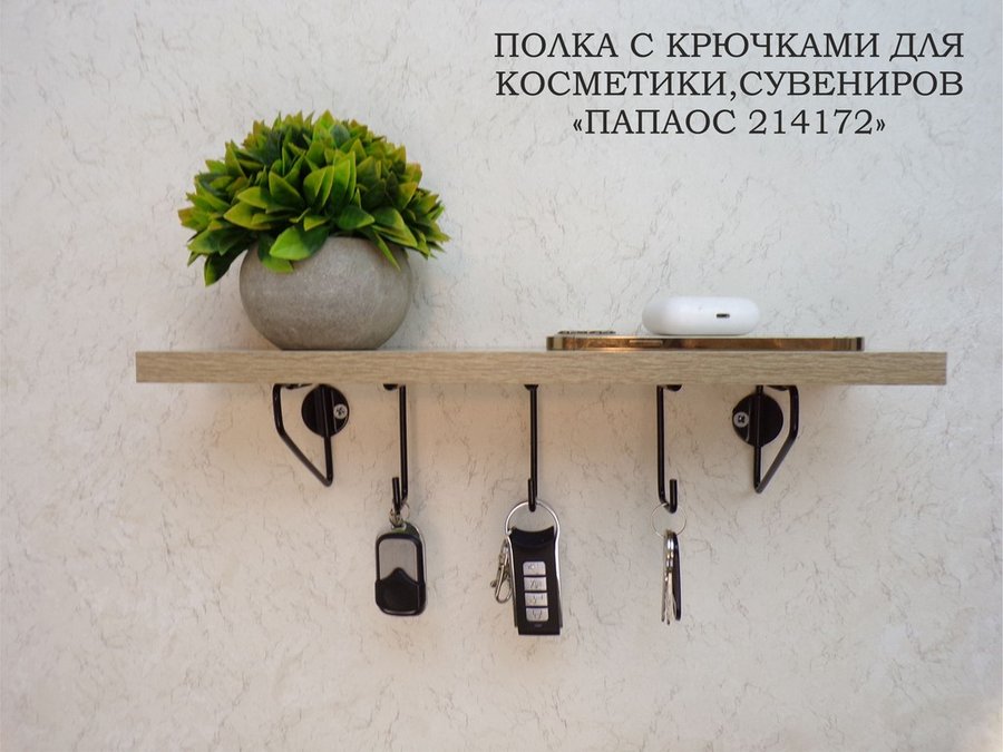Ключница, полка с крючками в прихожую 40х10 см, высота 9 см, черный "ПАПАОС 214172" дуб сонома
