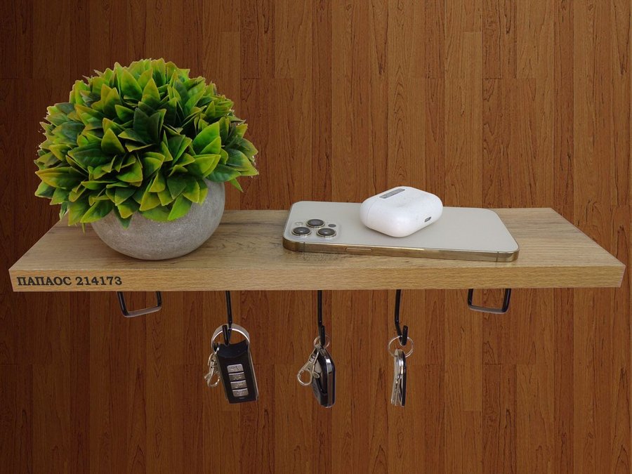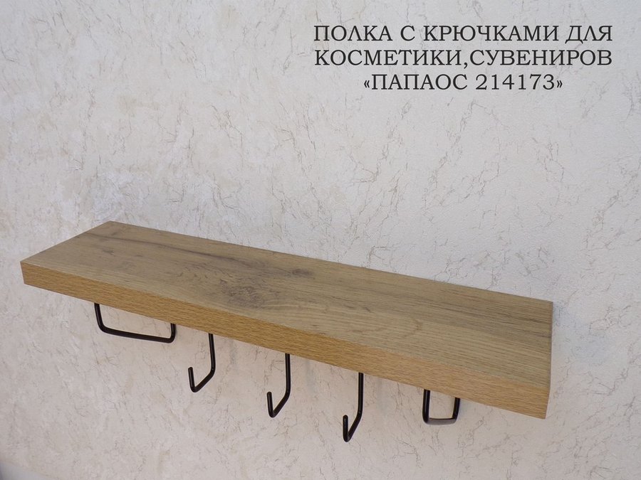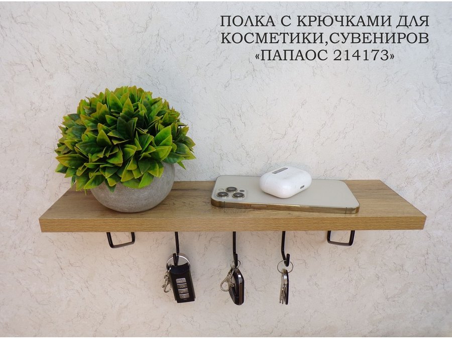 Ключница, полка с крючками в прихожую 40х10 см, высота 9 см, черный "ПАПАОС 214173" дуб вотан