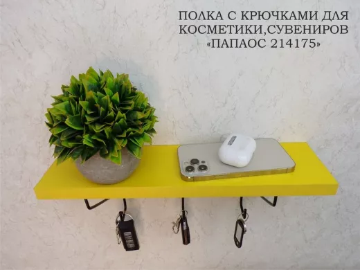 В корзину Купить в 1 клик Ключница, полка с крючками в прихожую 40х10 см, высота 9 см, черный "ПАПАОС 214175" желтый