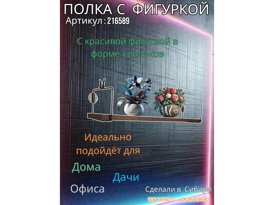 В корзину Купить в 1 клик Полка с фигуркой кроликов "ABILOVE-216589" размер 10х60см ,черный ,венге