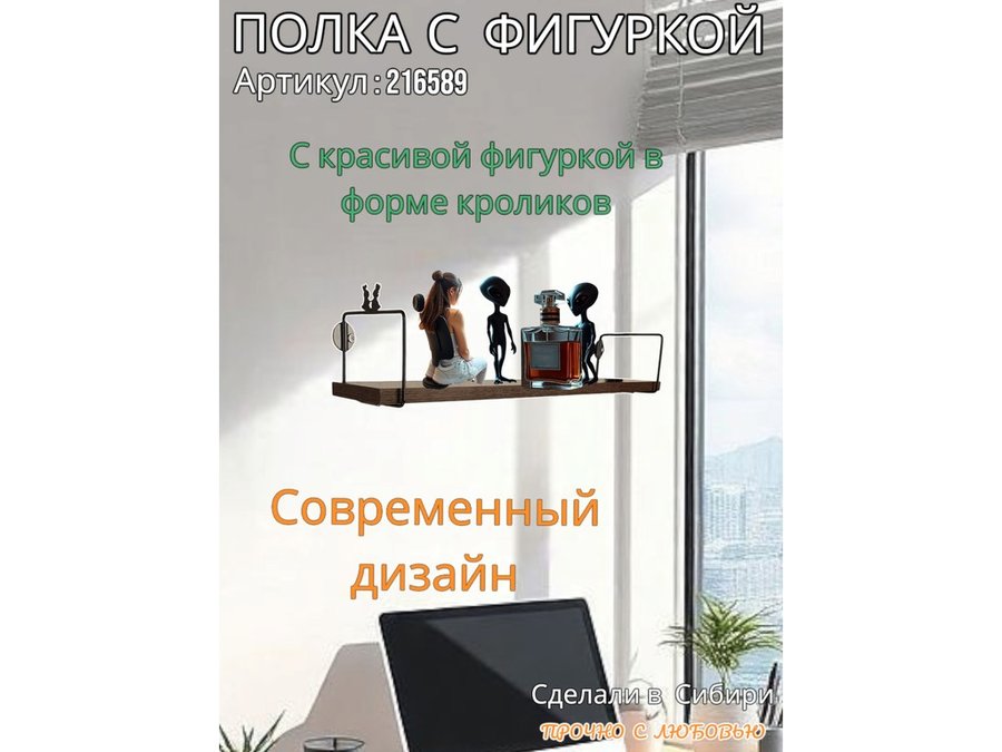 • Интересная полка с фигуркой, позволит разнообразить интерьер, сделать его непохожим, уникальным, запоминающимся.