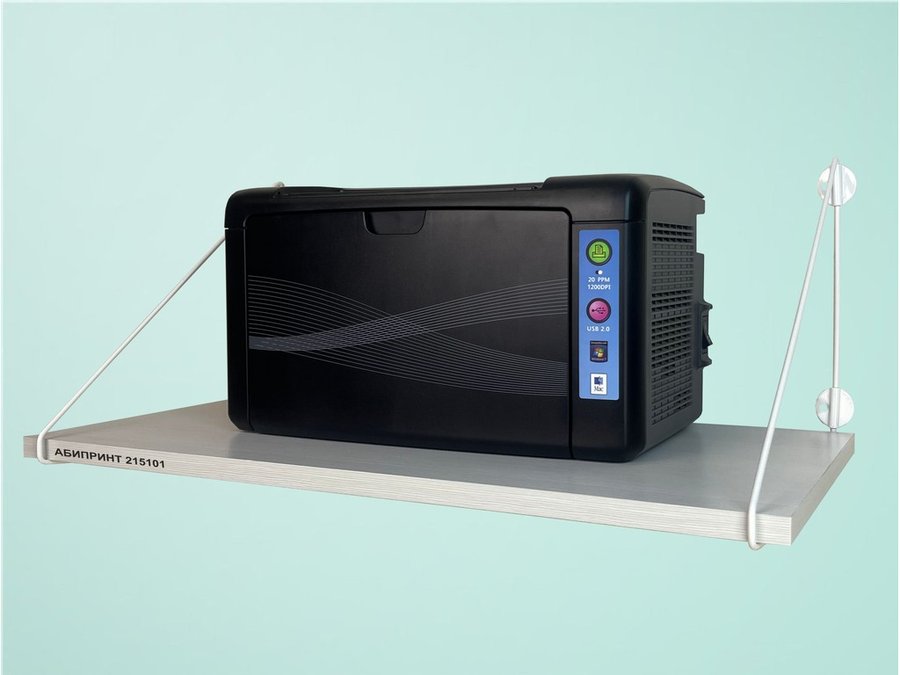 - Полка надежно крепится к стене при помощи анкеров или шурупов с дюбелями, на ней можно разместить принтер, бумагу и многое другое