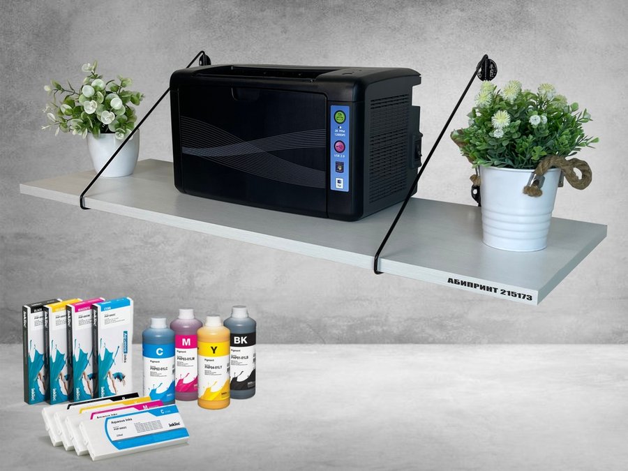 • Полка надежно крепится к стене при помощи анкеров или шурупов с дюбелями, на ней можно разместить принтер, бумагу