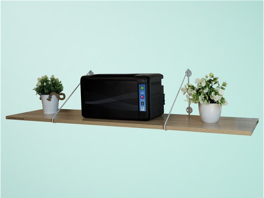 • Полка надежно крепится к стене при помощи анкеров или шурупов с дюбелями, на ней можно разместить принтер, бумагу