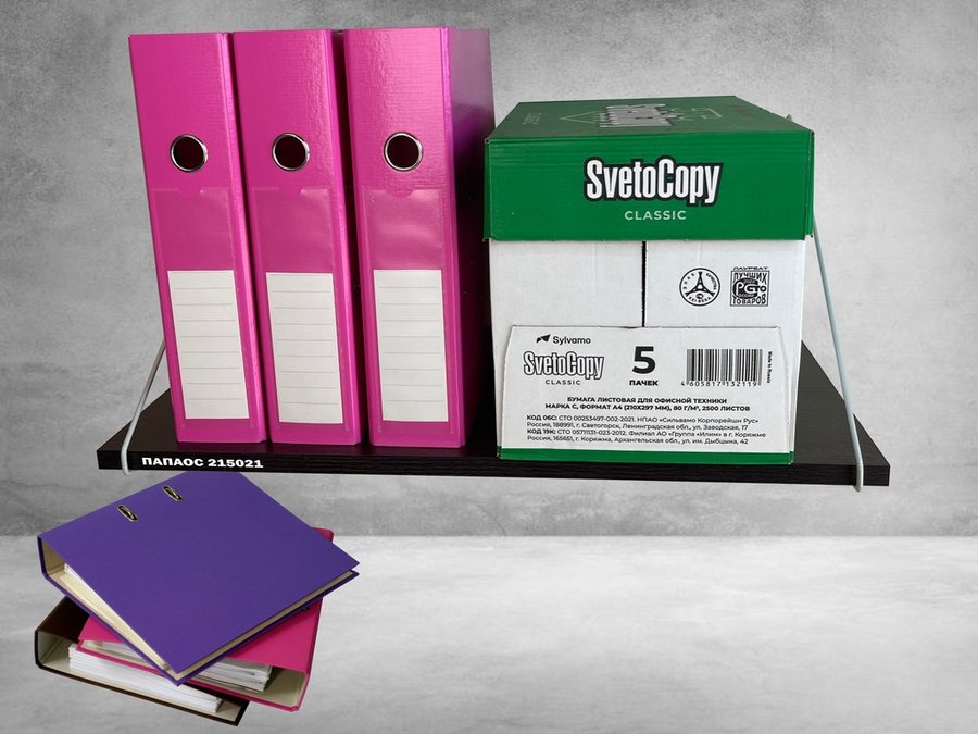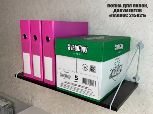 - Полка надежно крепится к стене при помощи анкеров или шурупов с дюбелями, на ней можно разместить папки, документы,бумагу и многое другое