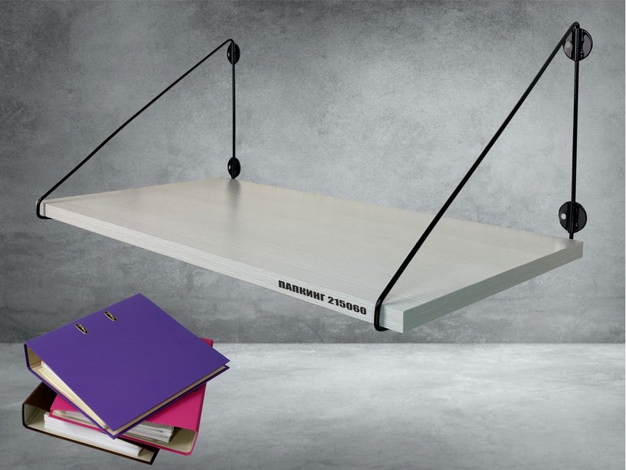 Полка для папок и документов "ПАПКИНГ 215060" высота 26 см размер 60х30 см черный и сосна выбеленная