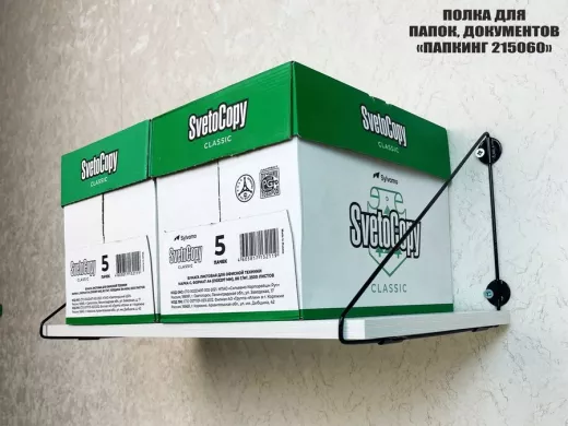 - Полка надежно крепится к стене при помощи анкеров или шурупов с дюбелями, на ней можно разместить папки, документы