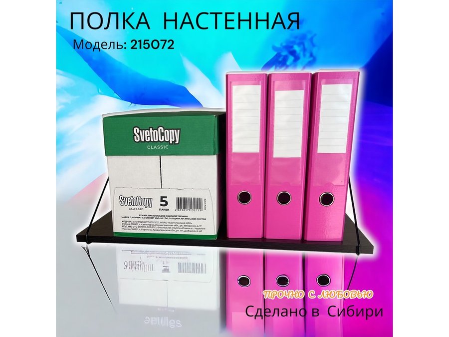 • Полка надежно крепится к стене при помощи анкеров или шурупов с дюбелями, на ней можно разместить папки, документы