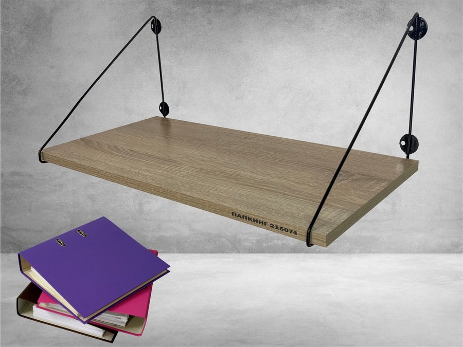 Полка для папок и документов "ПАПКИНГ 215074" высота 26 см размер 60х30 см черный и дуб сонома