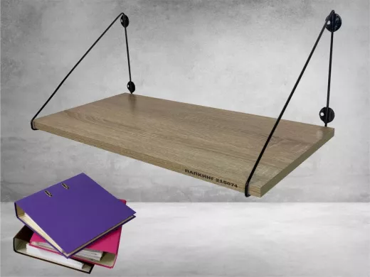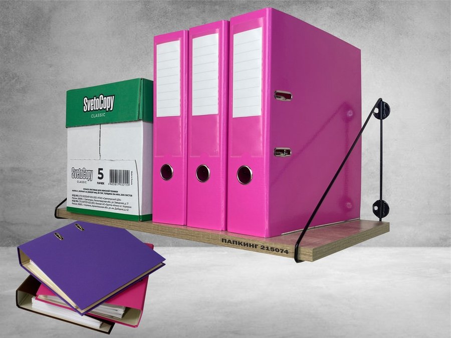 - Полка надежно крепится к стене при помощи анкеров или шурупов с дюбелями, на ней можно разместить папки, документы и многое другое